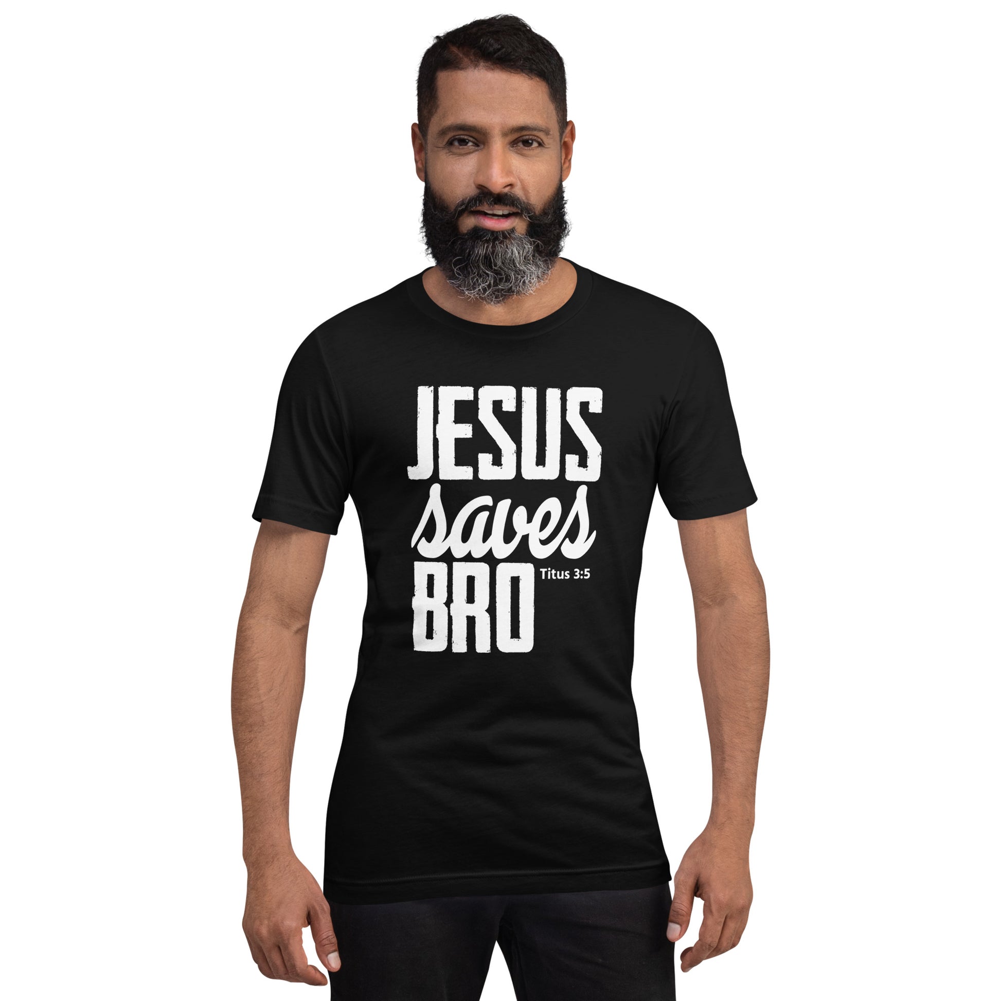 Spread the message of salvation with our "Jesus saves bro" t-shirt, featuring the scripture reference Titus 3:5 on the front. This tee is a bold declaration of the transformative power of God's grace and mercy. Crafted with care from high-quality materials, it offers both style and substance, allowing you to share the life-changing truth of Jesus' saving grace with others.