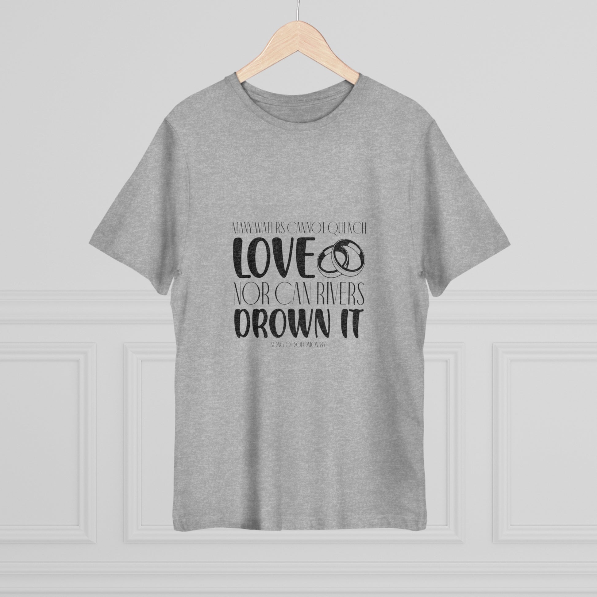 Immerse yourself in the profound depths of eternal affection with our "Unquenchable Love" T-Shirt, a highlight of our Valentine's Day collection. Featuring the compelling verse from Song of Solomon 8:7, this T-shirt is a vibrant ode to love’s enduring might and unyielding presence.